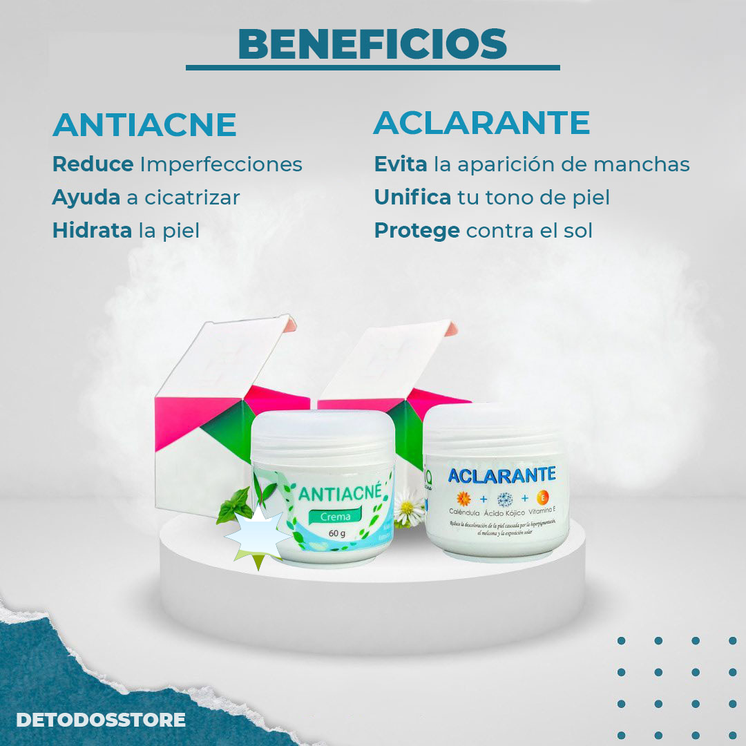 No pierdas más tiempo con Productos que no tienen Componentes Naturales, El Dúo Aclarante + Antiacné te harán lucir una piel saludable, sana y con Mejor Luminosidad